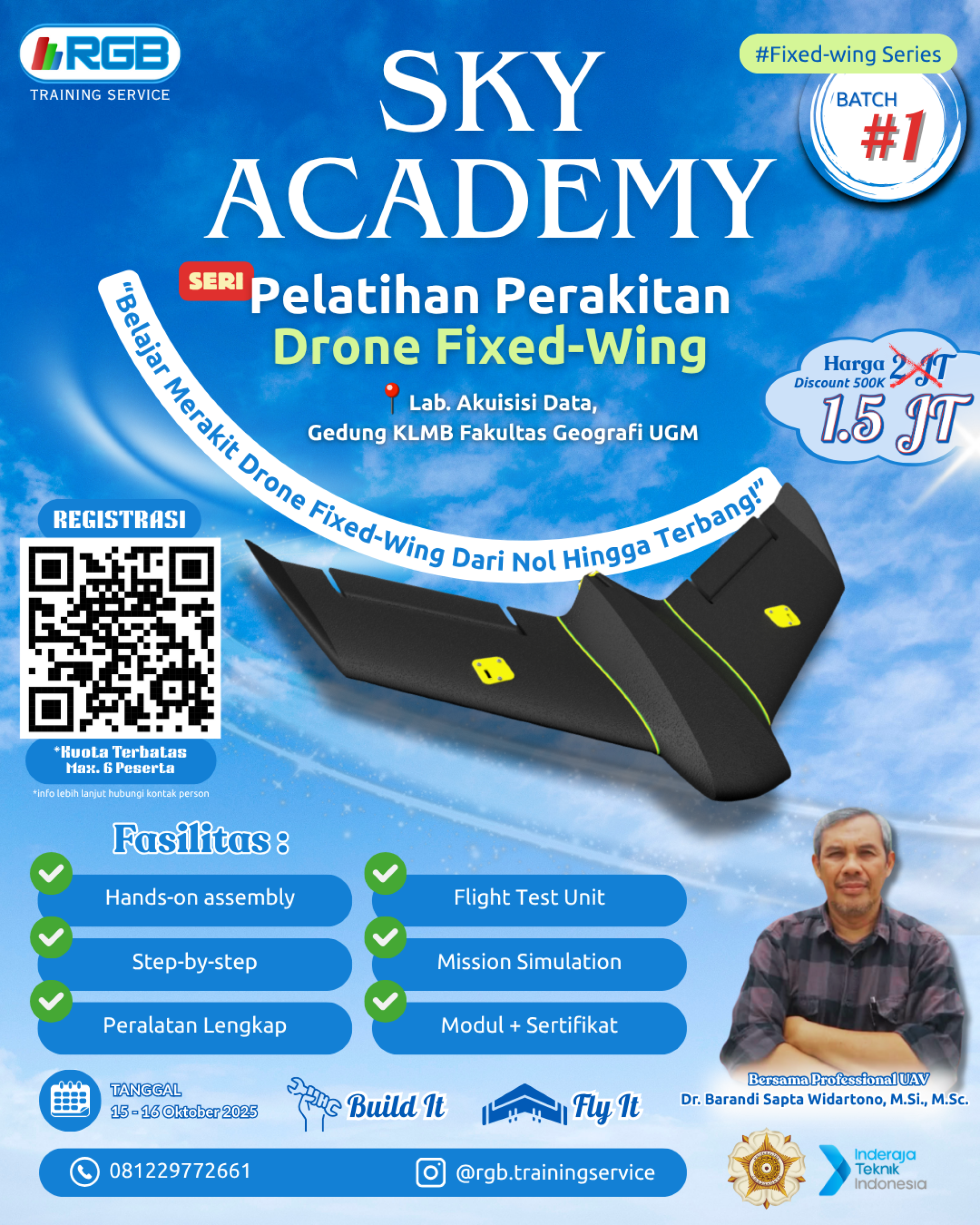 Bagi kalian yang tertarik dengan dunia drone, teknologi, dan geospasial, ini adalah kesempatan emas! Pelatihan intensif ini akan memandu peserta untuk merakit drone fixed-wing dari nol hingga siap terbang.